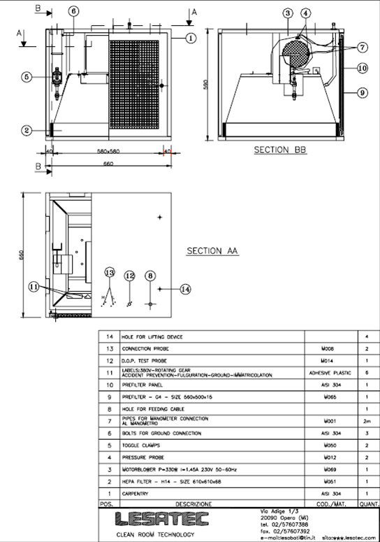 • Classe di contaminazione del flusso d’aria: ISO 5 (0,5 um) secondo ISO 14644