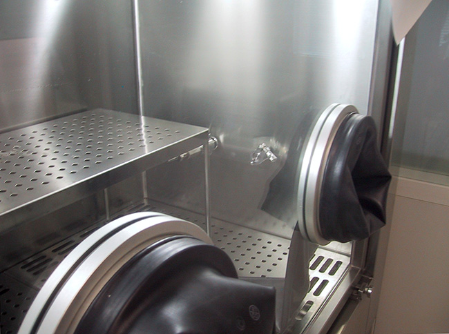 I piani di lavoro, asportabili, sono realizzati con tubi in AISI 304 a tutto beneficio delle operazioni di pulizia. Al di sotto di essi, in ogni vano, è presente una vasca di raccolta delle eventuali polveri o delle soluzioni di lavaggio/inertizzazione. Lo schema e la geometria dell’apparecchiatura sono tali da garantire, una volta impostato il regime di pressione differenziale positivo/negativo, un funzionamento auto-sicuro. Inoltre le caratteristiche di pulibilità delle superfici esterne la rendono idonea anche per il posizionamento in ambienti classe ISO5.