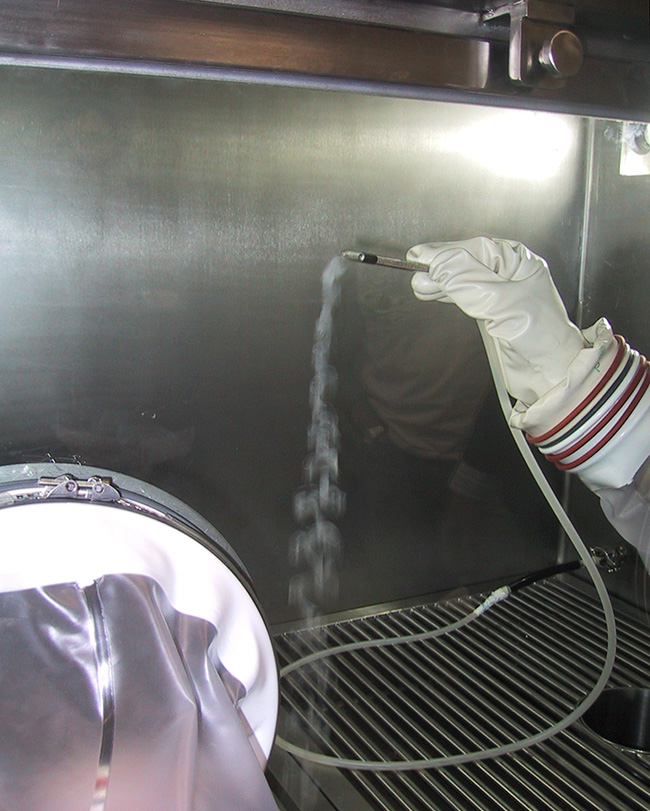 - Sistema di inertizzazione chimica dei contenitori o delle pareti e piani di lavoro dell’isolatore